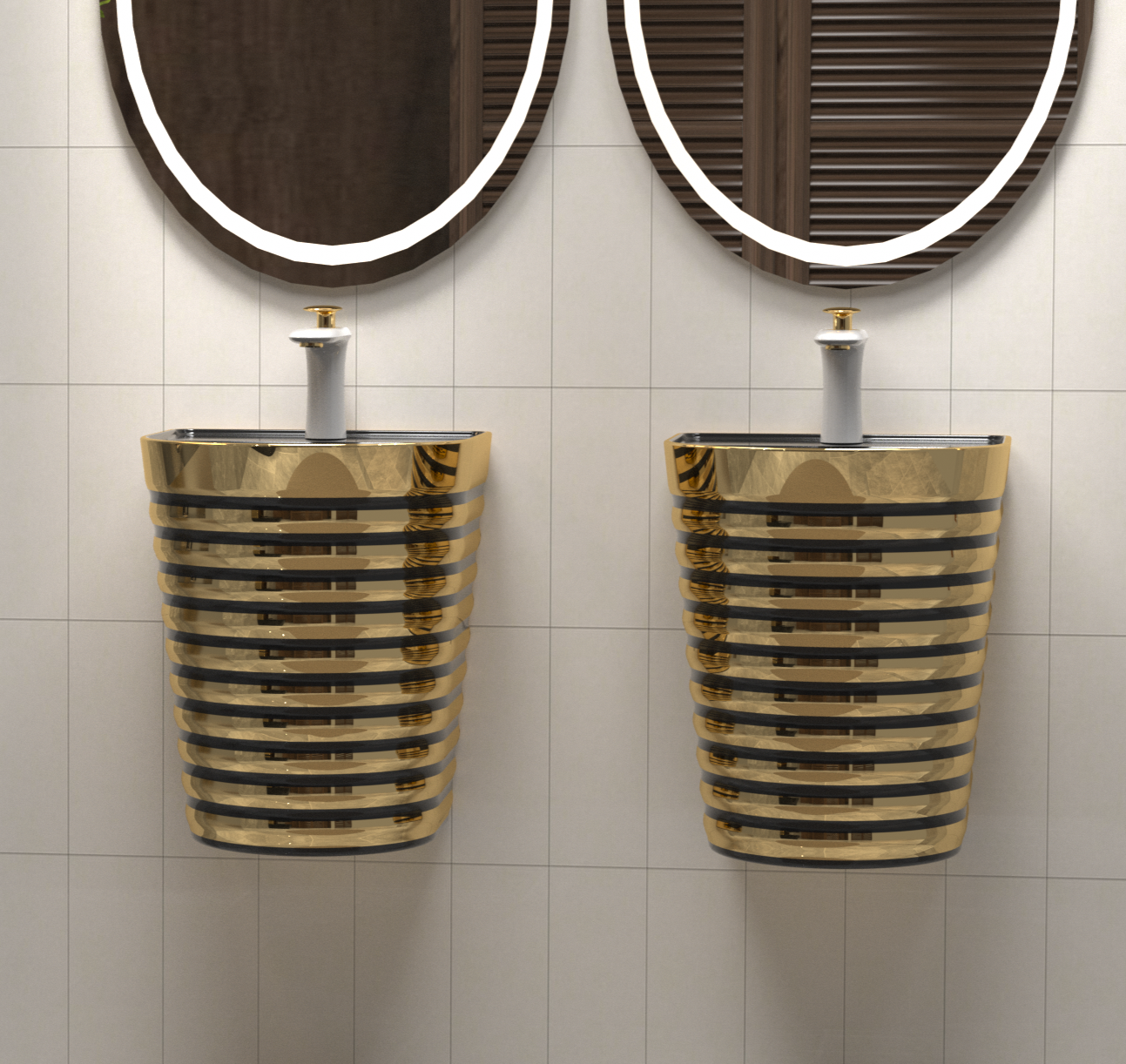 Acest lavoar suspendat în finisaj auriu/negru este o piesă de design statement, creată pentru băile care îmbină eleganța modernă cu accente luxoase. Cu o abordare artistică și o prezență vizuală puternică, acest model atrage atenția prin jocul rafinat de contrast dintre aurul metalizat și interiorul negru glazurat.