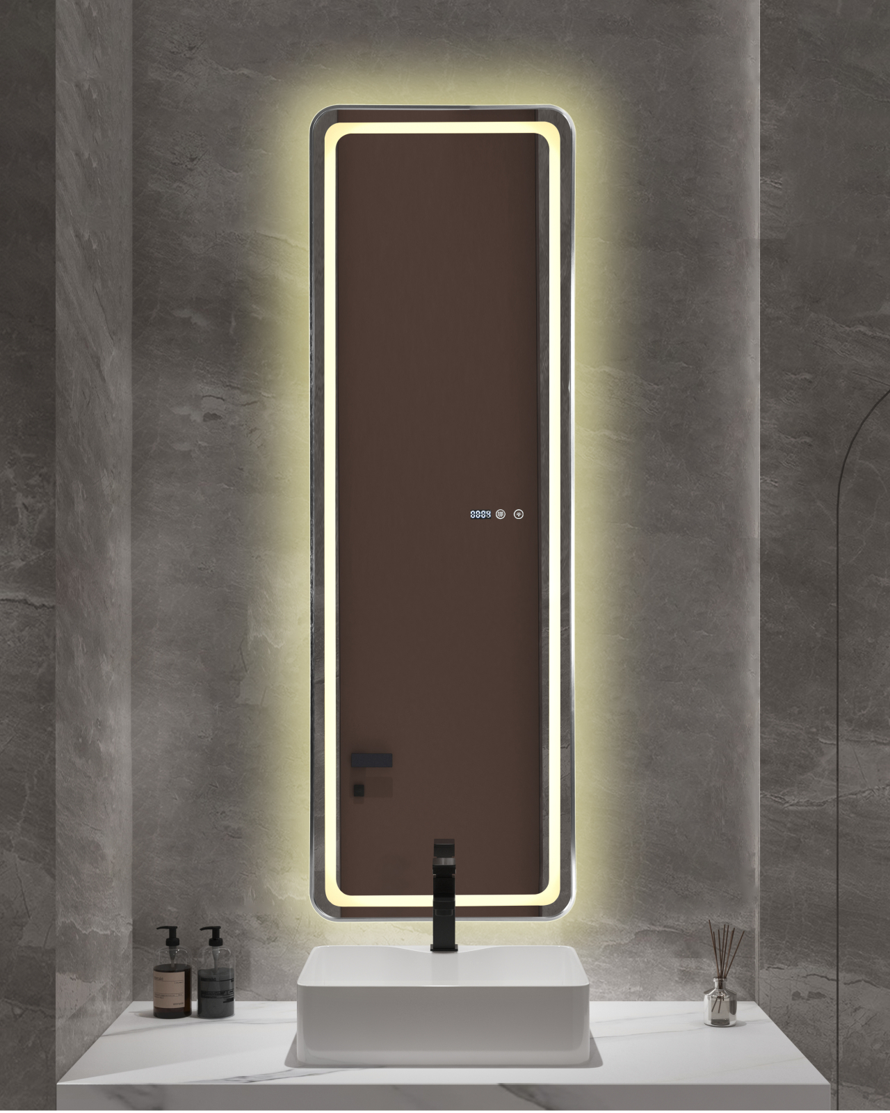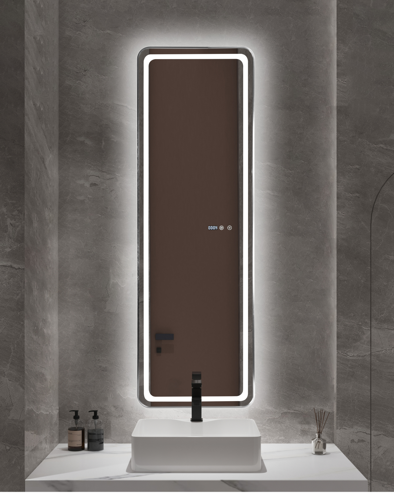 OEM Oglindă baie cu LED și funcție dezaburire 50×150 cm – Touch, 3 culori, ceas digital - 1180